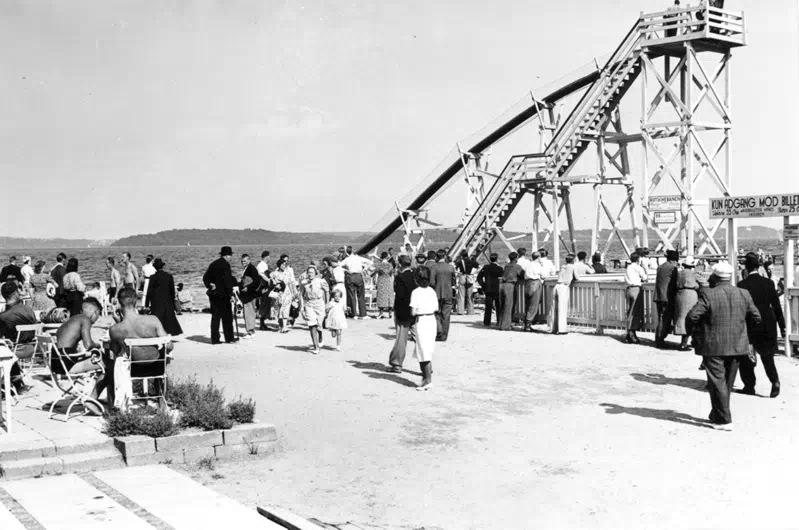 Badet blev anlagt på initiativ af gymnastik- og danselærerinde Yelva Leander Friis. I 1936 opførtes en kæmpemæssig vandrutsjebane.
